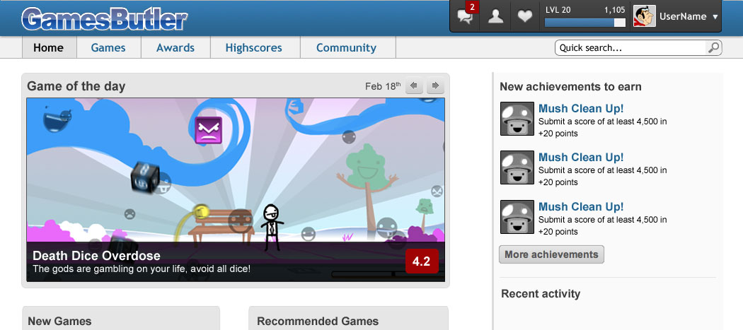 It seems pretty nice! I'm missing the Recommended and the Recently Played games in the Home page... And you will add a "Random games" there too? It would be nice and aleatory! ˆˆ